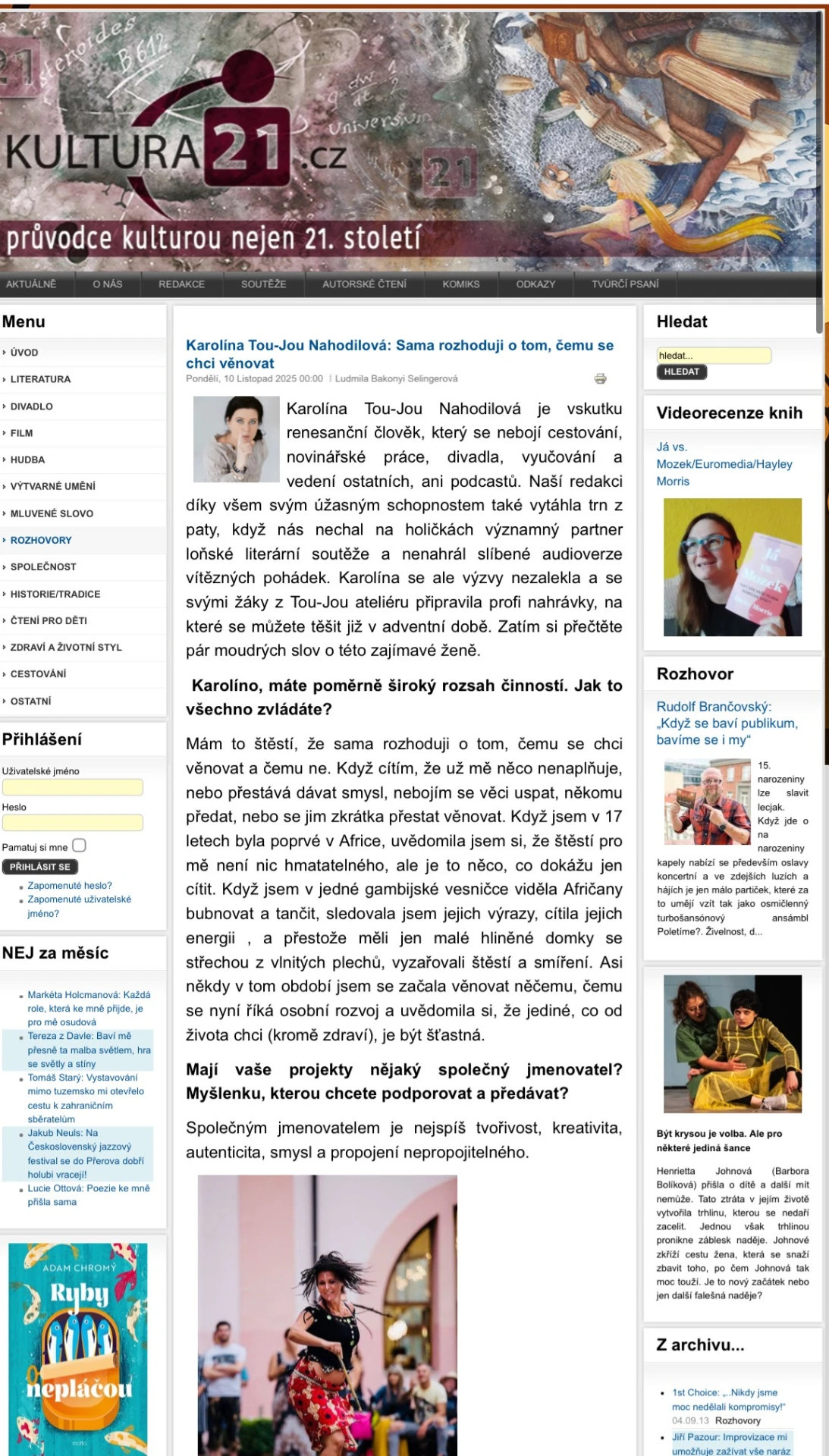 Tanečnice a performerka africké skupiny BaToCu (12 let) pod vedením Moniky Rebcové